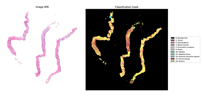 El dataset desarrollado incluye 15.480 anotaciones realizadas por patólogos especialistas en enfermedades de la próstata, que recogen un amplio espectro de la heterogeneidad tumoral. Entre ellas se encuentran 9.724 muestras de tumores de próstata, 2.657 biopsias benignas y otros tejidos relevantes que pueden observarse en biopsias prostáticas como estroma, nervios, tejido adiposo, vasos sanguíneos o células inflamatorias. Además, incorpora artefactos habituales en biopsias e imagen digital, lo que aumenta su valor al reflejar las condiciones reales del diagnóstico histopatológico.